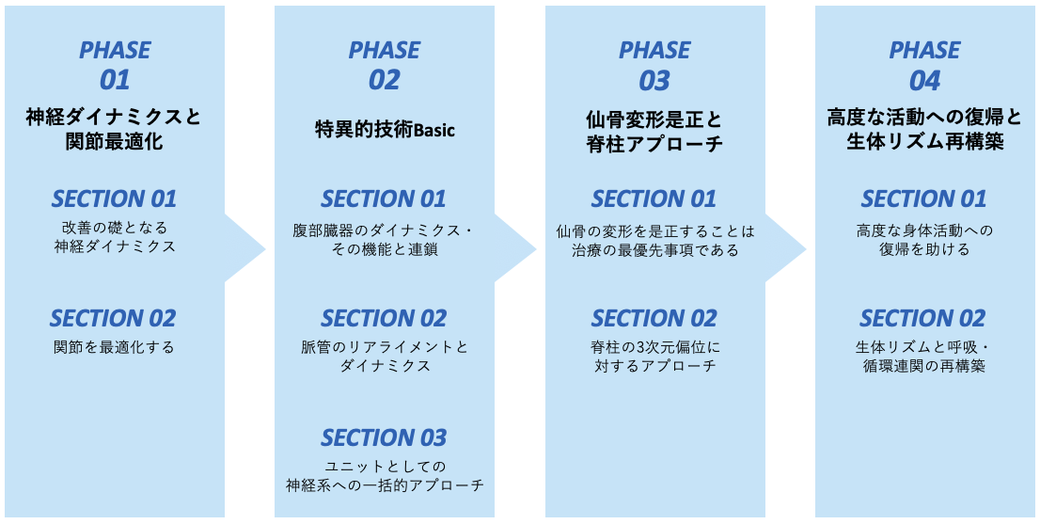 ここで扱う技術は、Phase3へ進むための重要なステップとなる臨床力の核。より深く、より本質的に身体にアプローチする力を養うフェーズです。